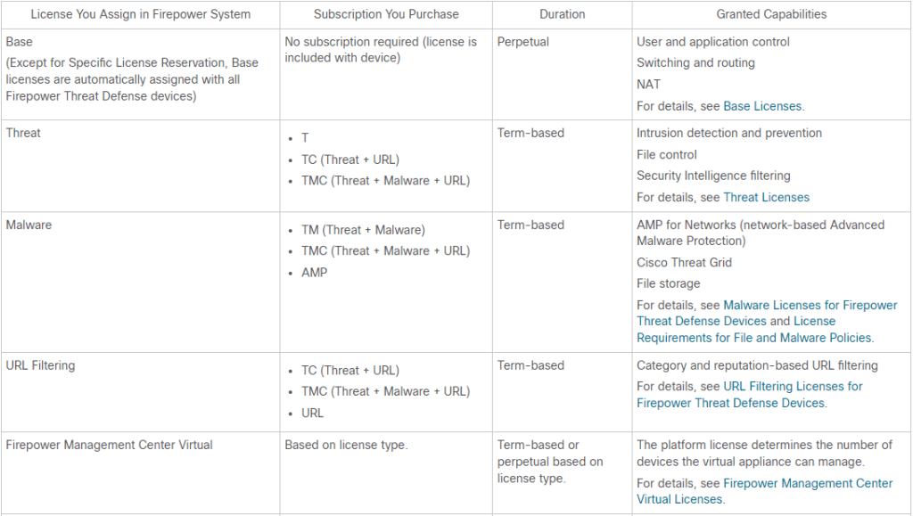 O por ultimo temos o FMC que requer uma licença de plataforma que está correlacionada com o número de dispositivos que ele pode gerenciar.
