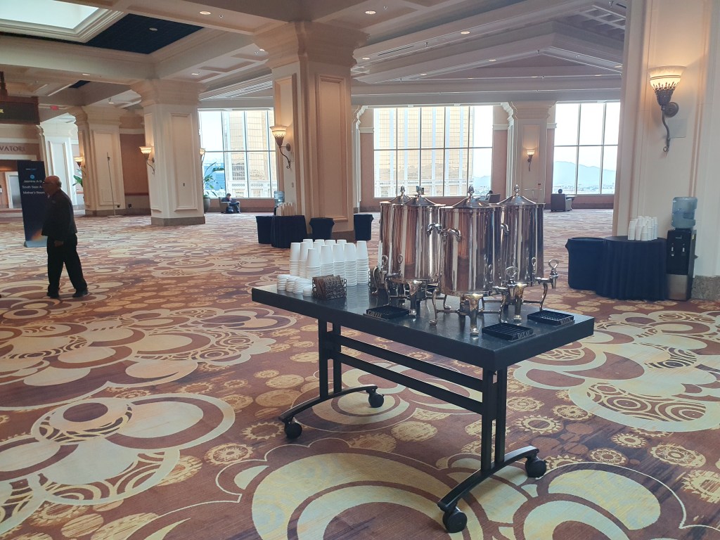 Durante o evento, em todos os cantos e locais, nos deparamos com uma quantidade abundante de café para garantir que o dia seja repleto de energia. Afinal, sabemos que sem café, as engrenagens da produtividade simplesmente não funcionam corretamente. O aroma tentador e o sabor dessa bebida mágica nos impulsionam a enfrentar qualquer desafio e nos mantêm alertas e focados em nossas tarefas. Portanto, abastecer-nos com essa preciosidade líquida é essencial para enfrentar o dia com toda a determinação e vitalidade. Com café em mãos, vamos ir para a próxima apresentação!