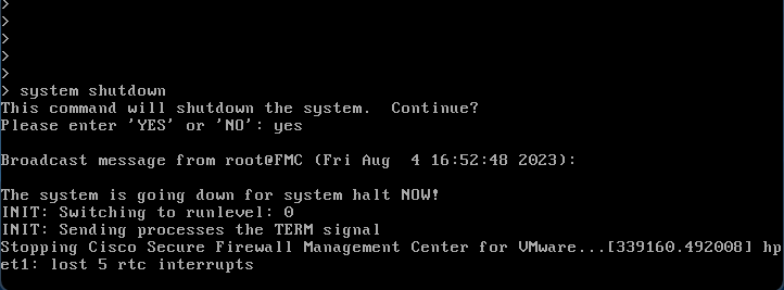 Broadcast message from root@FMC (tty1) (Fri Aug 4 17:12:59 2023):
