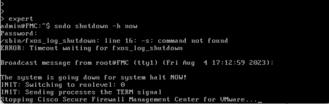 admin@FMC:~$ sudo shutdown -h now