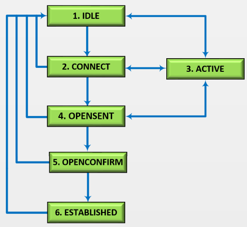 - Em caso de qualquer outro evento, o BGP retornará ao estado Idle.