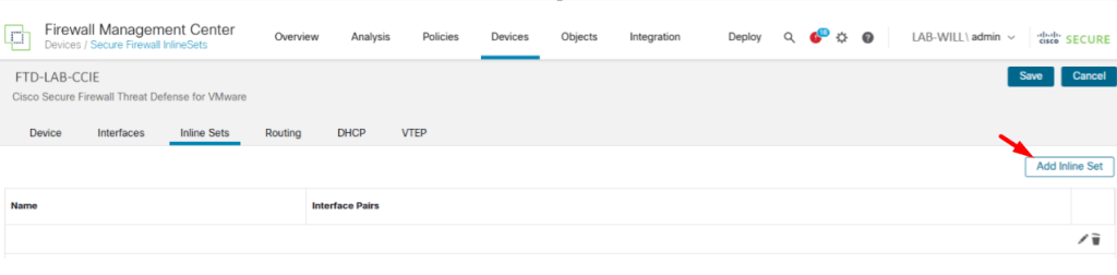 Mão na massa: configurando um Inline Set no FMC
