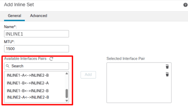 Devices > Device Management > Inline Sets > Add Inline Set > Clique em Add Inline Set
