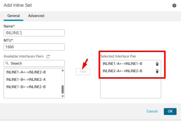 - Clique em Add para movê-lo para a área Selected Interface Pairs